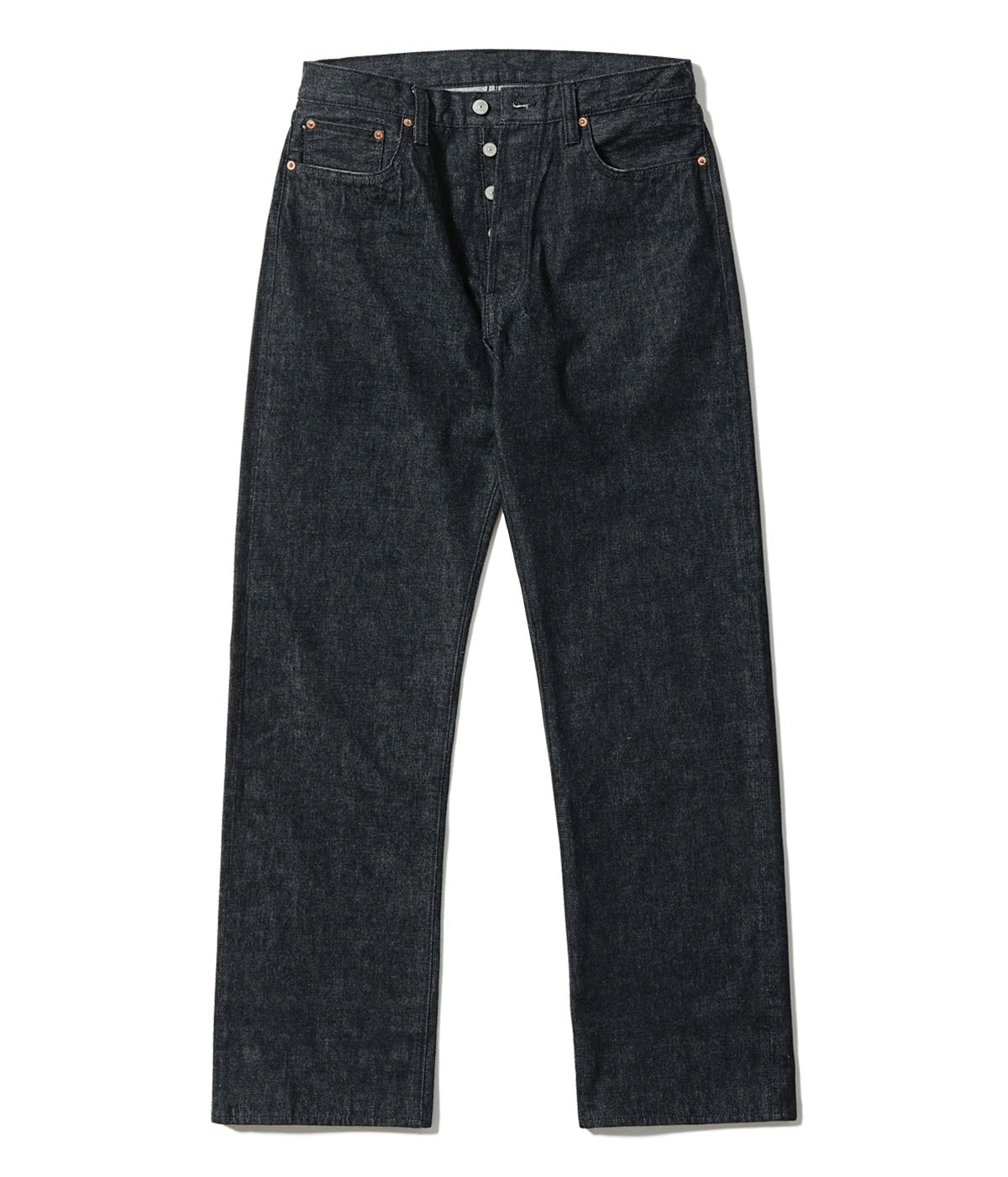 The 1947 model is iconic jeans of Sugar Cane that represents the extravagant details found in the vintage jeans made in the late 1940s. The entire process of production that includes spinning, dyeing, weaving, and sewing is based on one of vintage jeans, and done with great care to create a pair that is worthy of the name “Standard Denim”. The silhouette is regular straight
