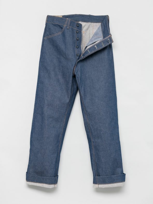 This is our version , we have been making these from the beginning on. This version is limited and made with japanese natural indigo selvage denim. Full leg and higher rise. True to size, but hit me up if you have any questions